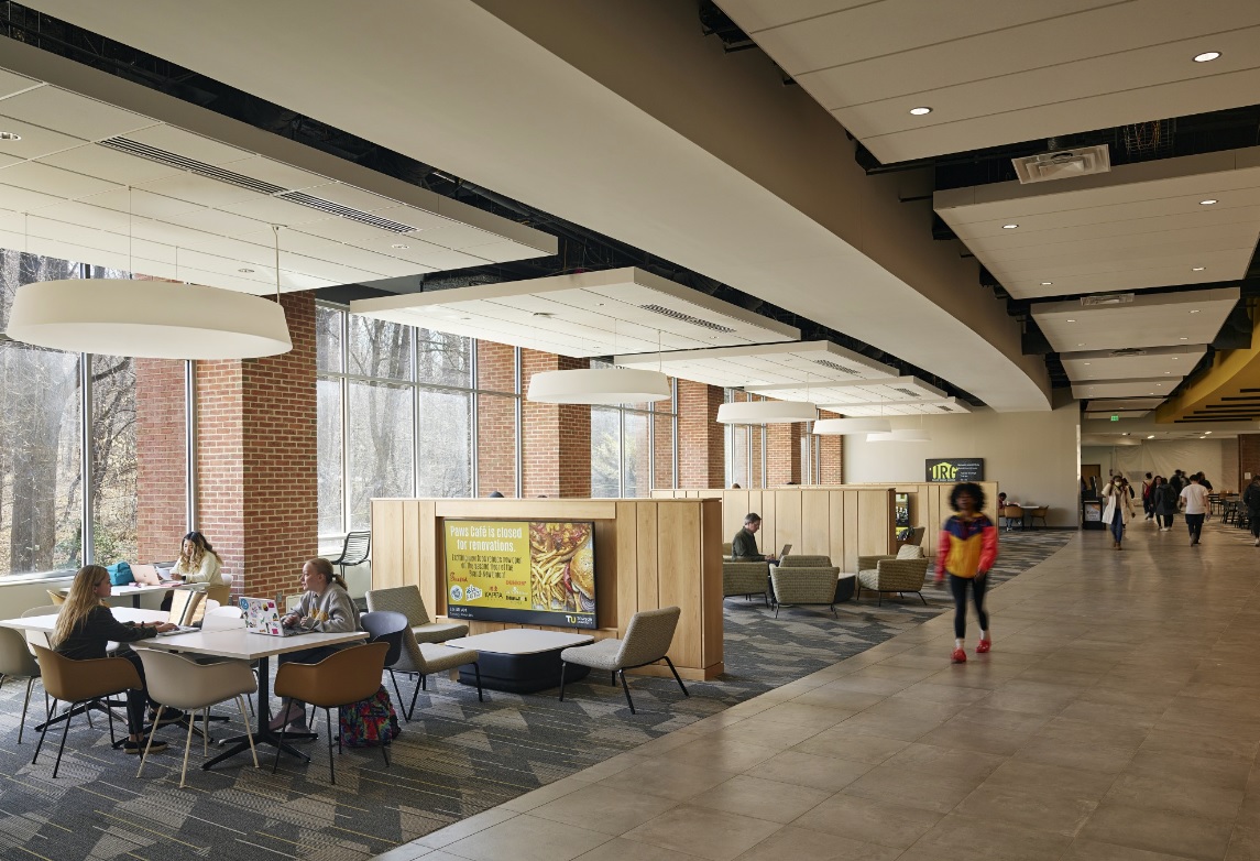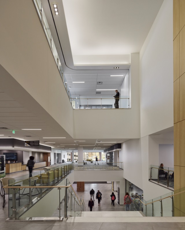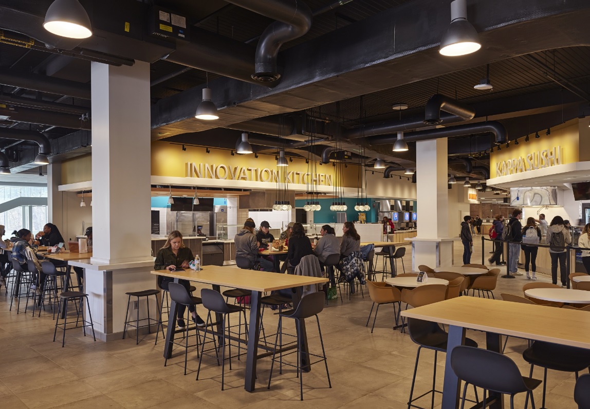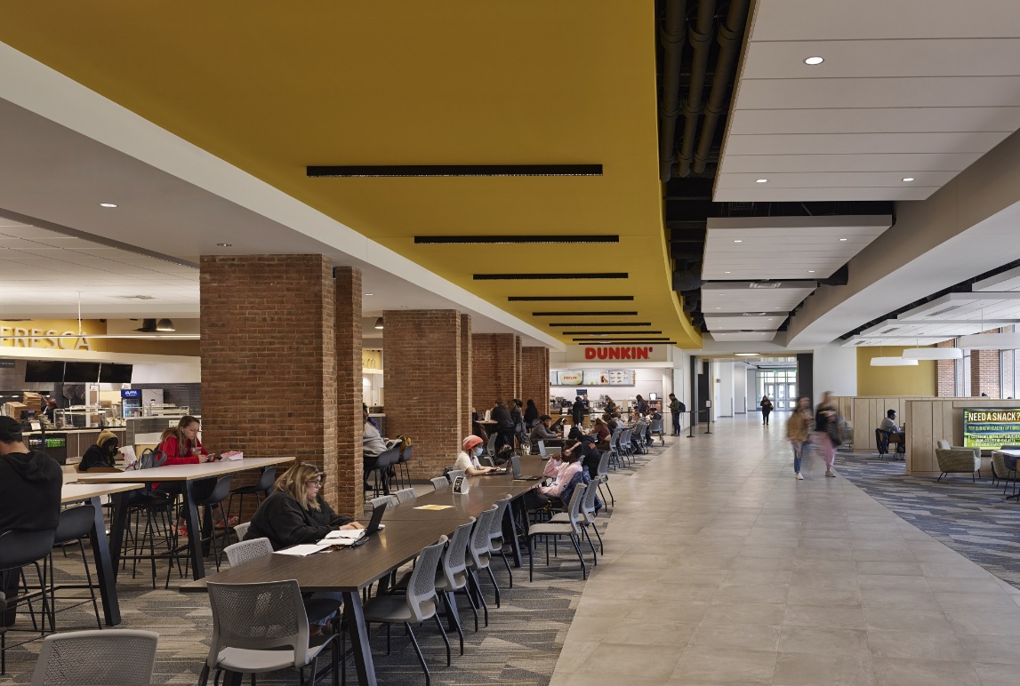 A comprehensive renovation and expansion of this existing 171,000 GSF student services building included the addition of 85,000 sf in order to meet current and future needs and create a spacious and open setting for student events, groups, dining and more for the campus community. University Union serves as the campus hub for cocurricular activities, a multitude of student services, and educational, cultural and social programs for students and the entire academic community. New and renewed spaces include a 300-seat auditorium/ movie theatre, a food market with seven food venues, a relocated and expanded Career Center, a 15,000 sf ballroom, and doubled space for student activities and organizations. Phased construction included Phase 1, the new addition with the dining hall and new main entrance and Phase 2, renovation of the existing Union building. WFT provided plumbing, fire protection, fire alarm design, life safety code analysis, and construction administration services.